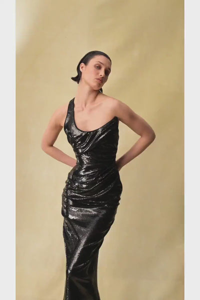 Sequin corset draped maxi dress